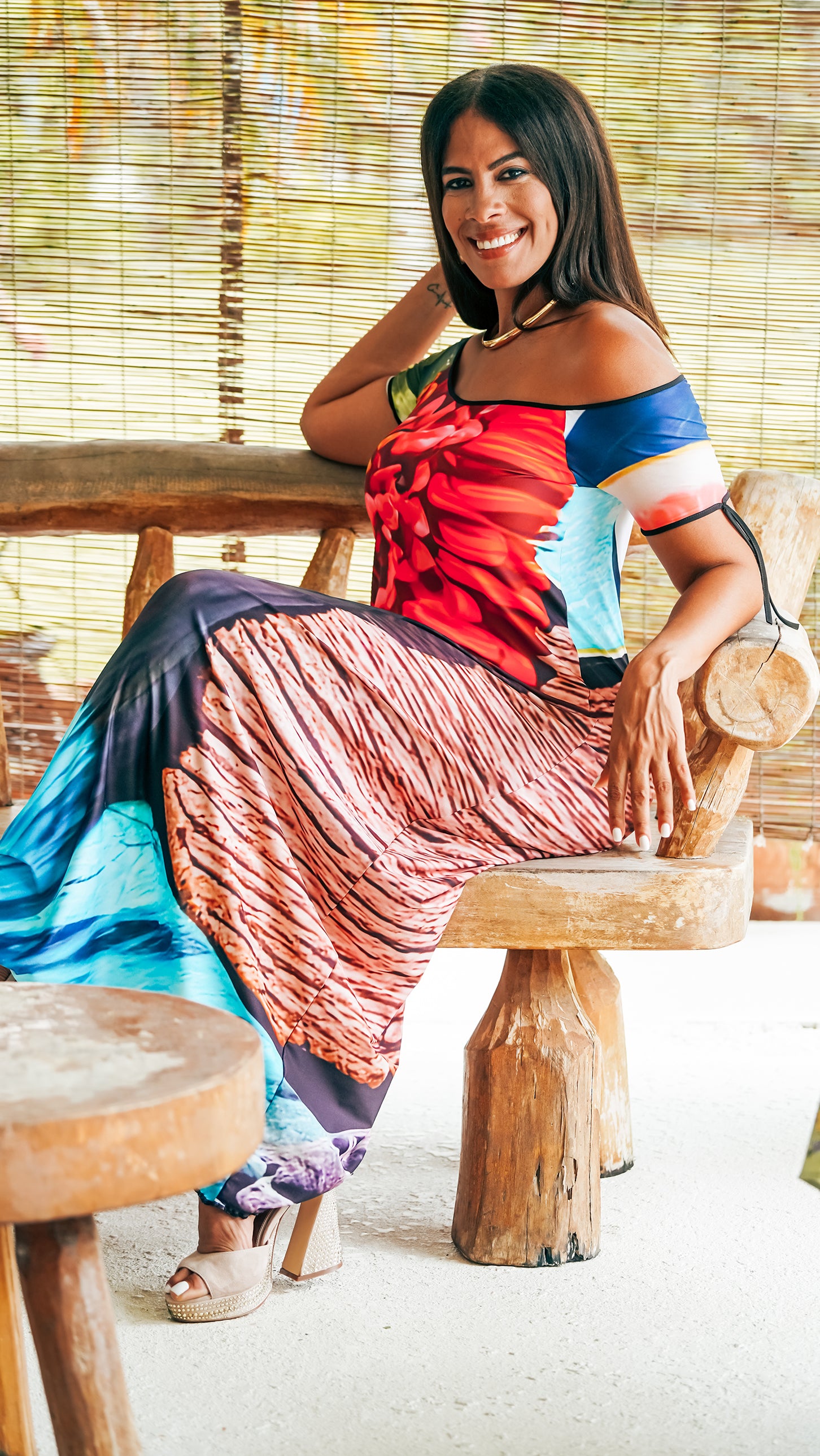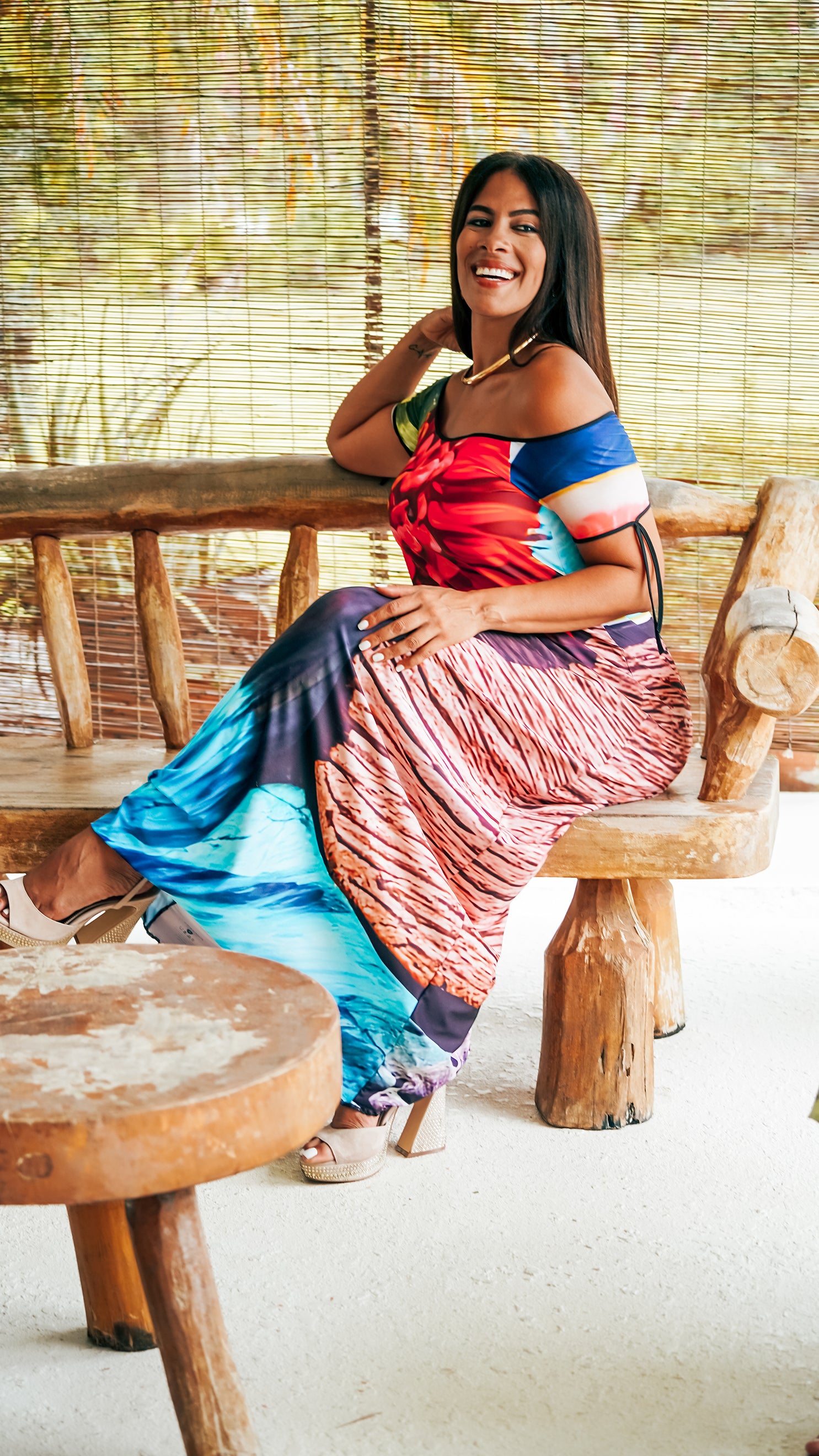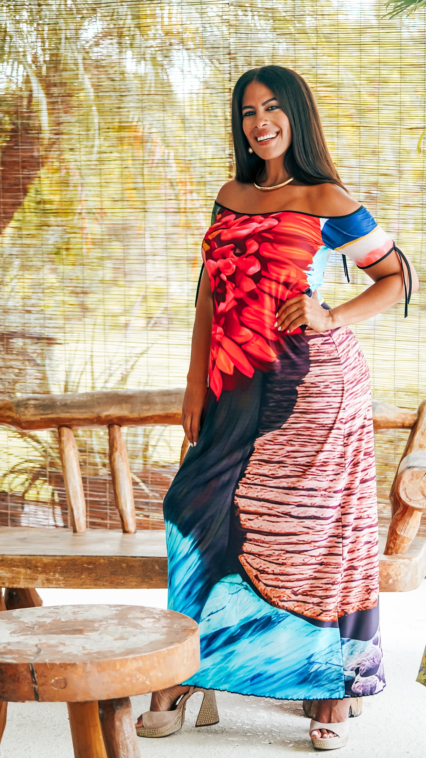 The Valeria Open Back Maxi in Hawaii print features a flattering A-Line silhouette, and a gorgeous back. A one-of-a-kind piece to take you anywhere.