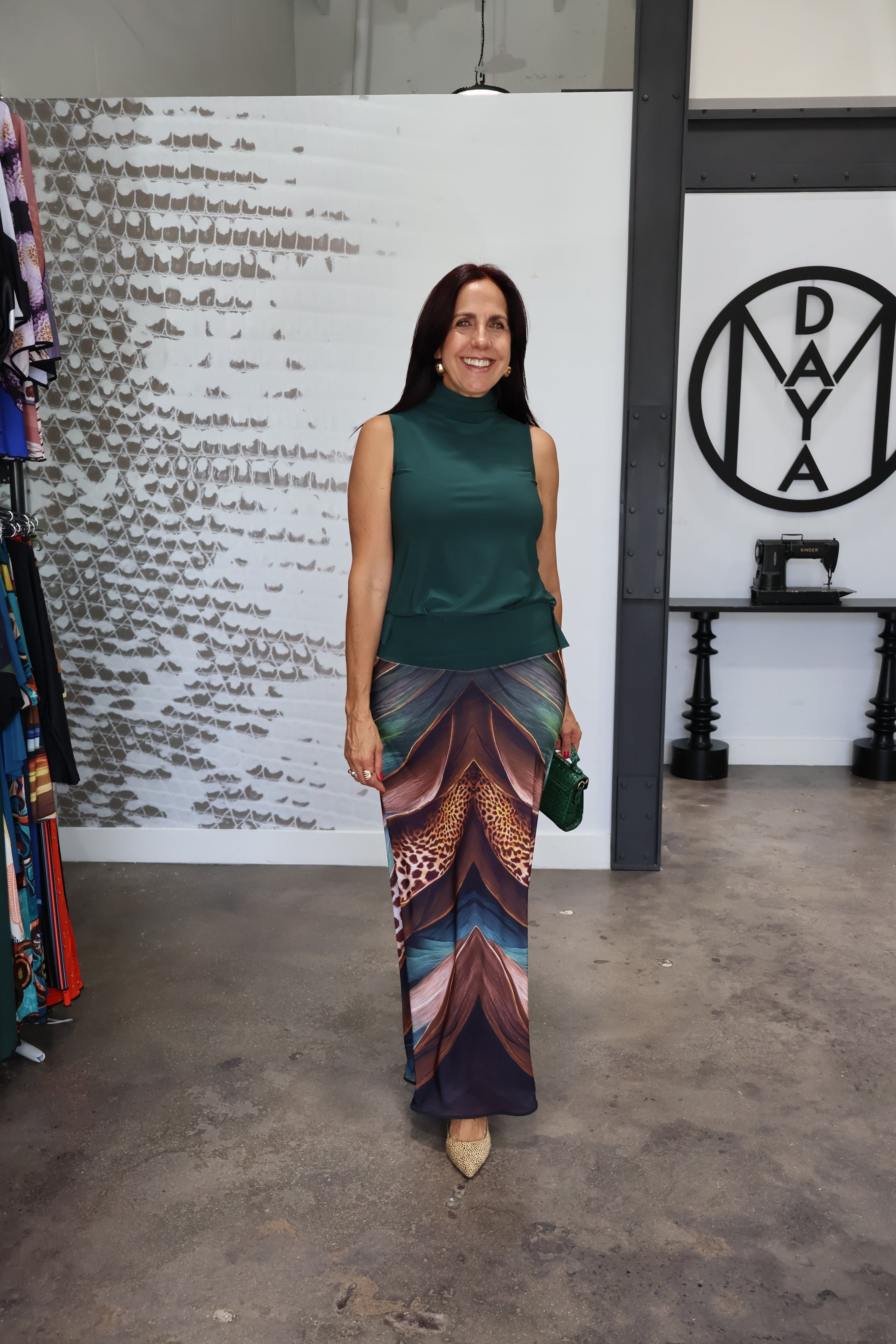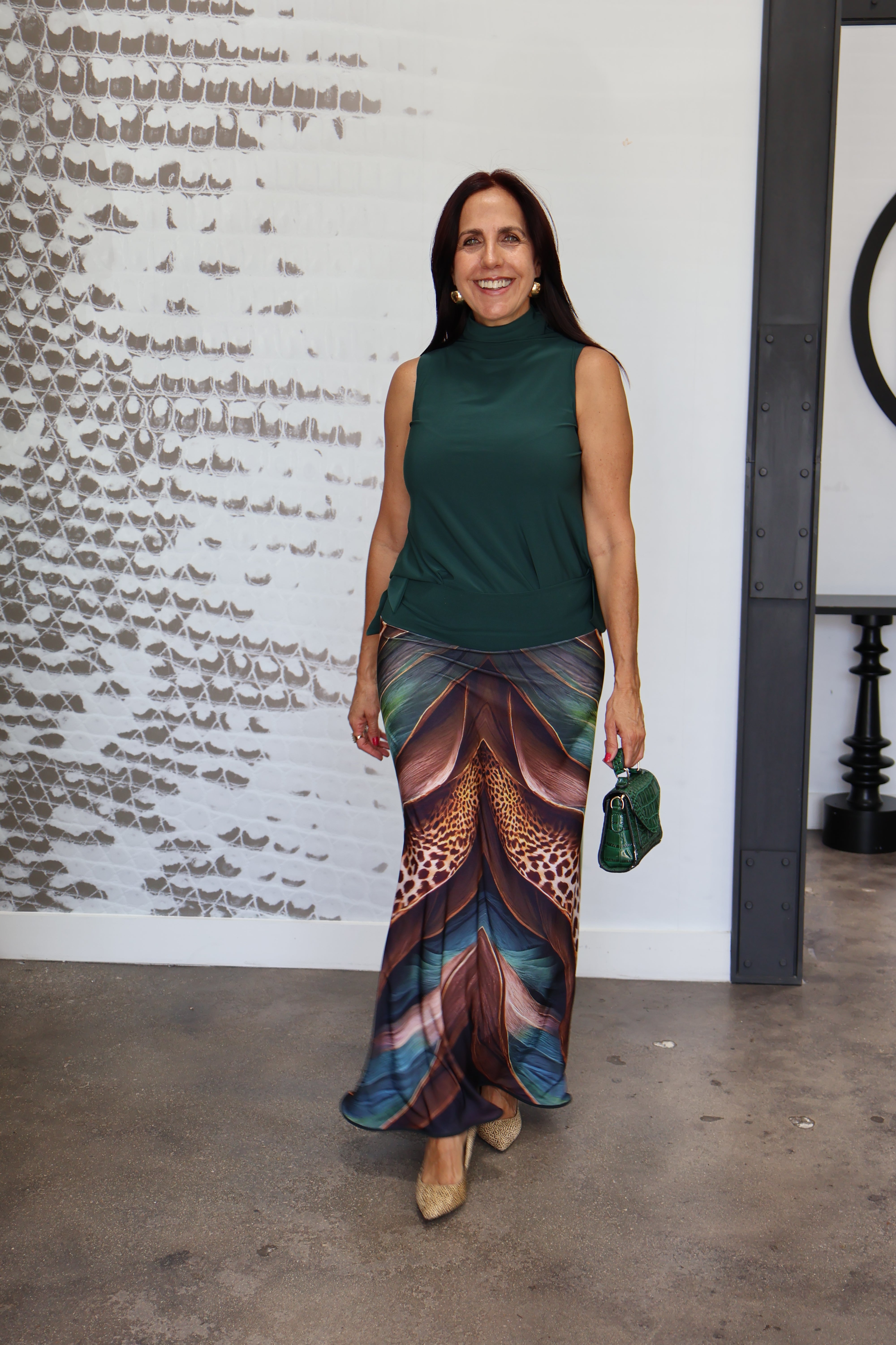 Elevate your wardrobe with our beautiful and comfortable long skirt. Its exclusive print, inspired by nature and animals, adds a touch of uniqueness to any outfit. Perfect for any occasion and easily paired with earthy tones. Machine washable and easy to dry.