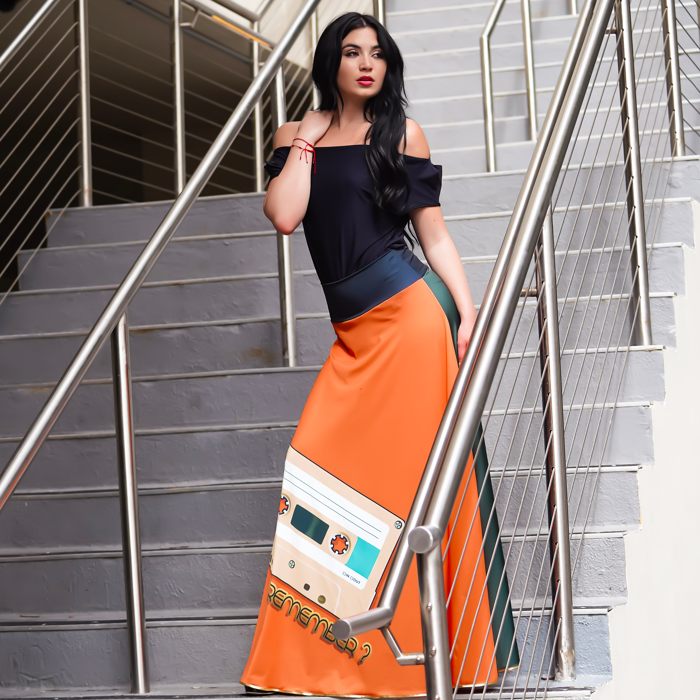Sleek and elegant, the RETRO Remember Maxi Skirt features a very cool cassette tape. This is a must have piece in your Omdaya collection. Versatile, chic, and flattering. Perfect for any season, day or night. Pair with your favorite Omdaya top and you are ready to shine with comfort and confidence.
